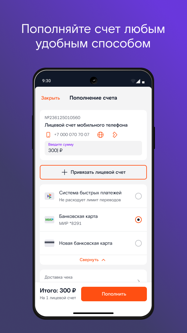 - ✅ 👁️ Просмотр баланса — мгновенный доступ к состоянию всех ваших лицевых счетов.