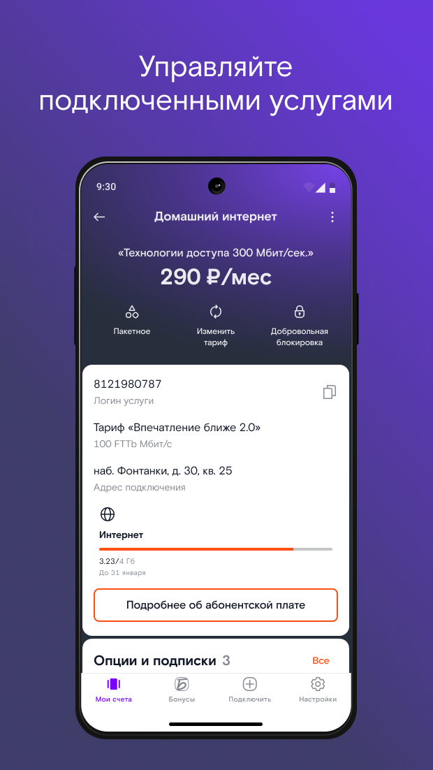 - ✅ 📶 Управление тарифами — просмотр текущего плана и переход на более выгодный.